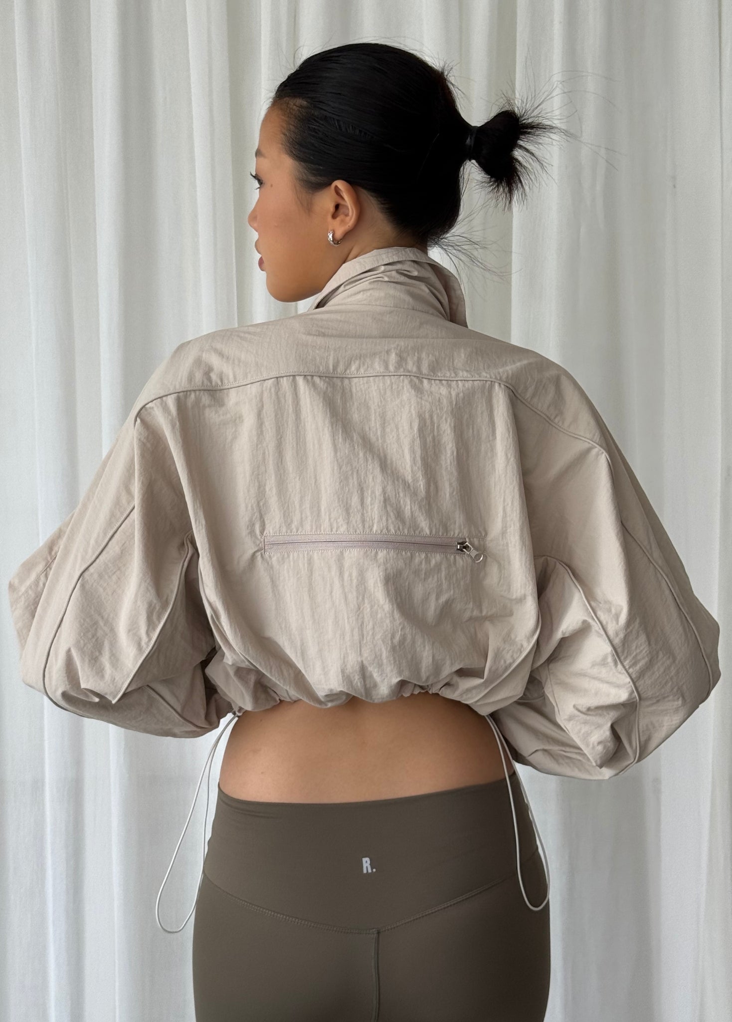 - Length: versatile mid-waist length and full zip with stand-up collar